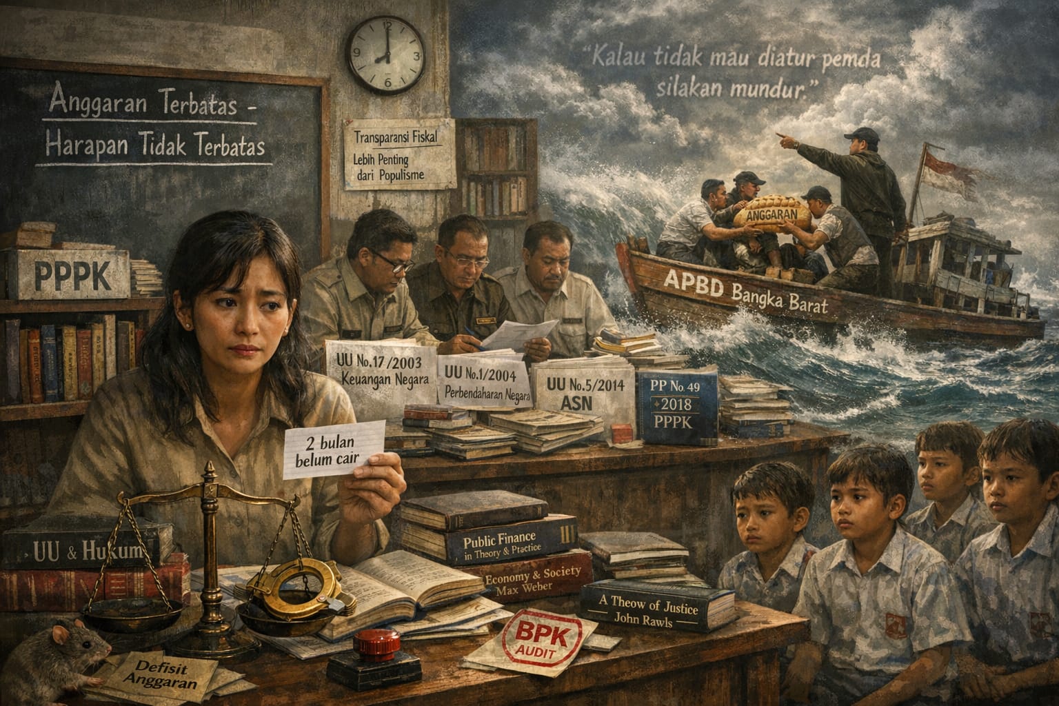 Bangka Barat|Babelwow.com – Di sebuah ruang kelas di pesisir Mentok, seorang guru membuka buku pelajaran sambil menahan cemas. Ia tahu gajinya belum cair dua bulan. Ia juga tahu, di rapat DPRD, aspirasi mereka diperdebatkan. Namun di ruang lain di meja kerja pemerintah daerah, angka-angka APBD berbaris seperti pasukan sunyi. Di situlah keputusan diambil. Di situlah […]