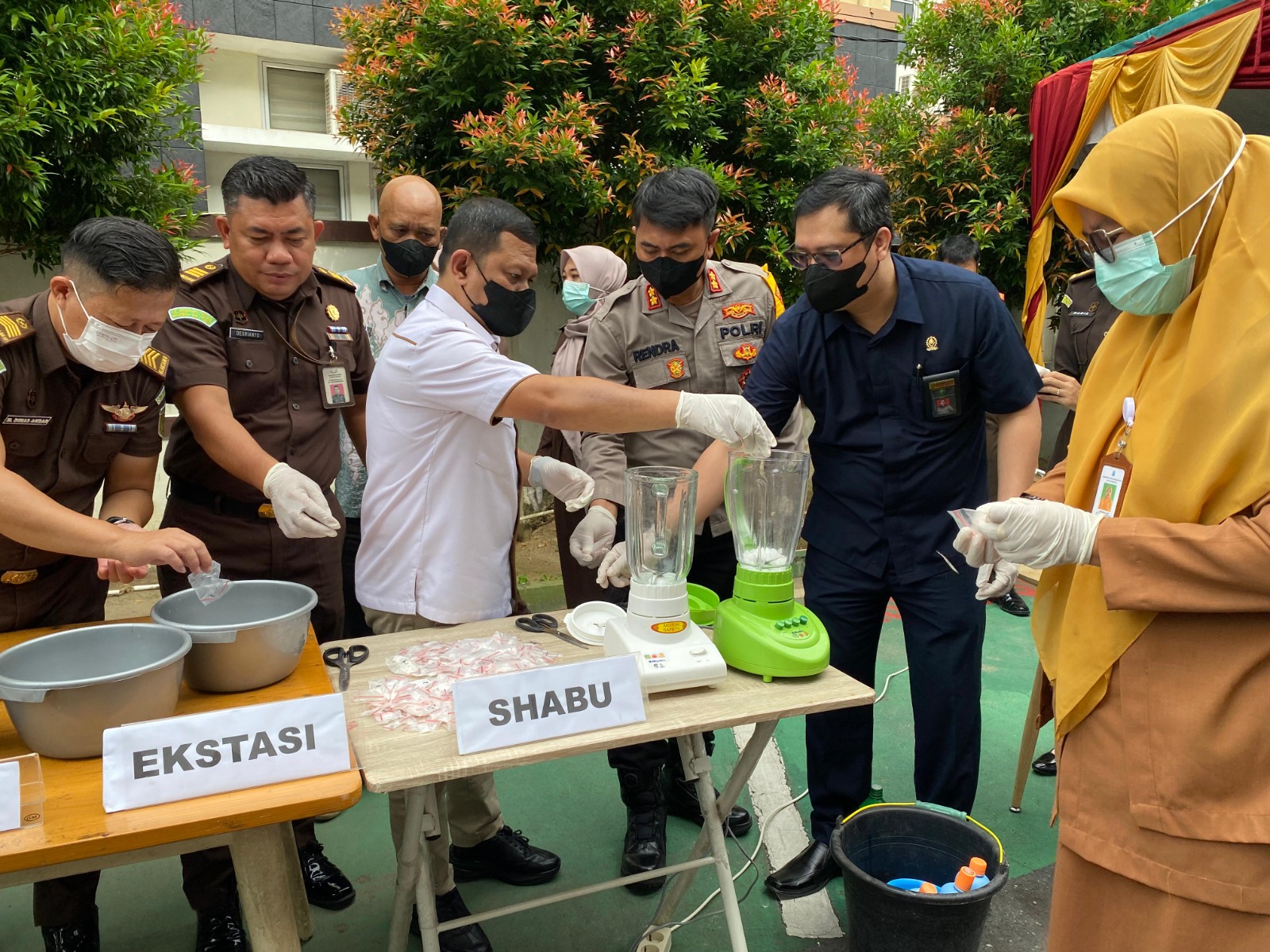 Barang bukti narkotika seperti sabu, ekstasi, dan ganja dihancurkan menggunakan blender lalu dibuang ke saluran air. Barang bukti lain berupa pakaian, flashdisk, dan kartu ATM dimusnahkan dengan cara dibakar.