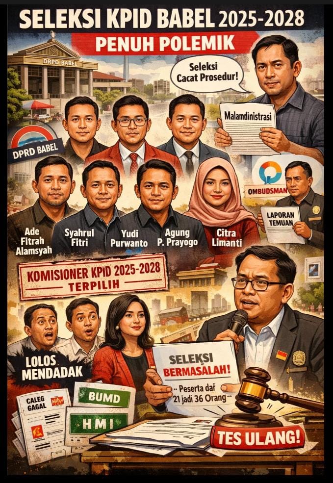 “Seleksi tidak melibatkan unsur dari KPI Pusat sehingga dikategorikan maladministrasi, lalu jumlah peserta dari 21 menjadi 36 tidak memiliki dasar hukum normatif yang sah,” jelas Didit kepada wartawan, Kamis (18/12/2025). (Sumber: Alza, Publisher: KBO Babel)