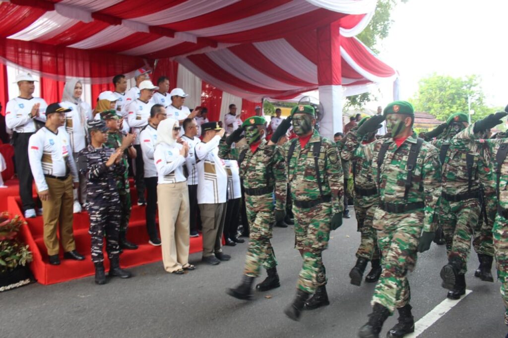 Pangkalpinang|Babelwow.com – Kasrem 045/Gaya Kolonel Inf Ichwansyah,S.H.,M.H didampingi Kasipers Kasrem Kolonel CAJ Ahmad Sodiq S.A.g mewakili Danrem 045/Gaya Brigjen TNI Safta Feryansyah, S.E.,S.I.P.,M.Han menghadiri Pawai dan Karnaval lomba baris-berbaris dalam rangka HUT RI ke 80 Tahun 2025 Provinsi Kep.Bangka Belitung tempat di panggung Kehormatan Jalan Jendral Sudirman no. 01 Pangkalpinang, Senin (01/09/2025).