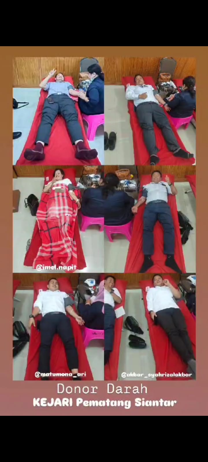 Acara ini merupakan hasil kerja sama antara Kejaksaan Negeri Pematang Siantar, Palang Merah Indonesia (PMI) Pematang Siantar, serta RSUD Dr. Djasamen Saragih Pematang Siantar. Tak hanya diikuti oleh para pegawai kejaksaan, kegiatan sosial ini juga mendapat dukungan dan partisipasi aktif dari pekerja BRI Kantor Cabang (Kanca) Pematang Siantar.